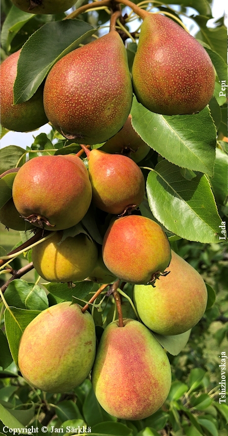 Puuhun on vartettu useampaa eri lajiketta, joten se tuottaa satoa yksinään. Yhdestä puusta kolmenlaisia päärynöitä!